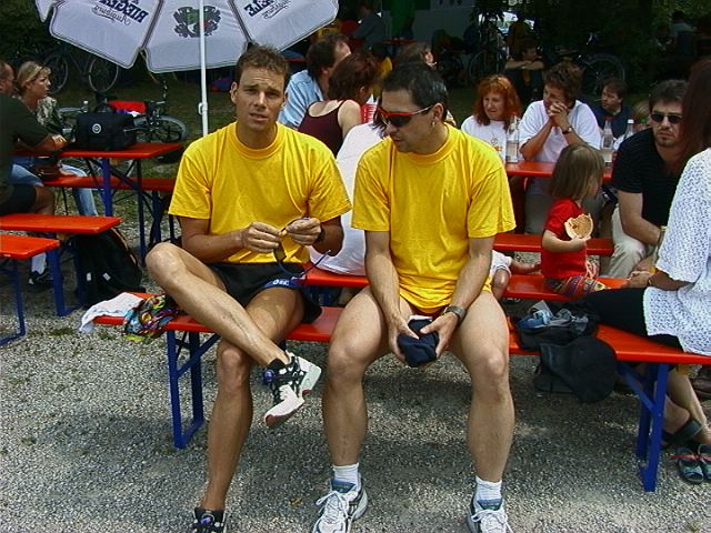 Roland und Reinhold beim Kuhsee-Triathlon 2000