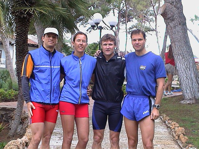 Thomas, Katja, Peter und Roland imTrainingslager auf Mallorca 2002
