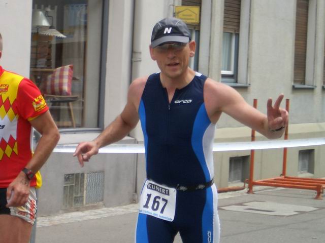 Markus Gebele im Ziel beimAllgäu Triathlon 2005