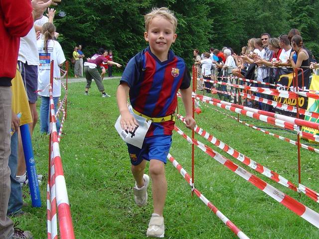 Oliver Werner im Ziel beimKindertriathlon in Augsburg 2005