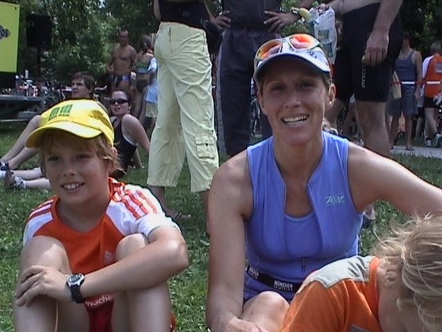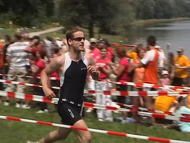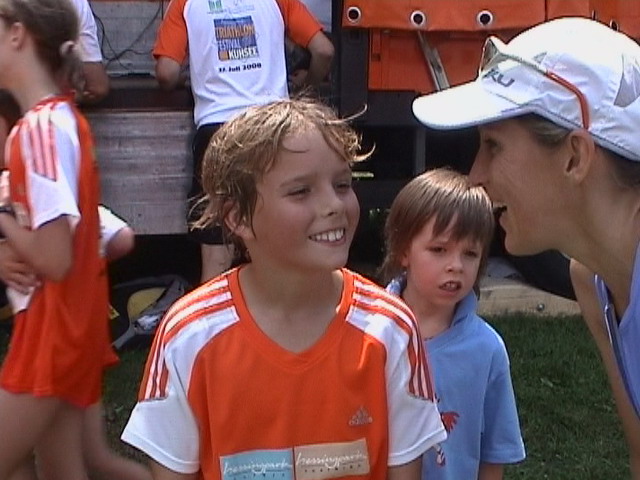 Oliver Werner im Zielbeim Augsburger Kindertriathlon