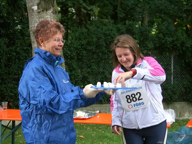 Verpflegungsstand der Triathletenbeim Halbmarathon in Friedberg
