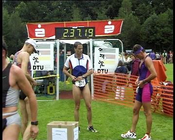 Roland Werner im Ziel beimAmmersee-Triathlon in Riederau 1999